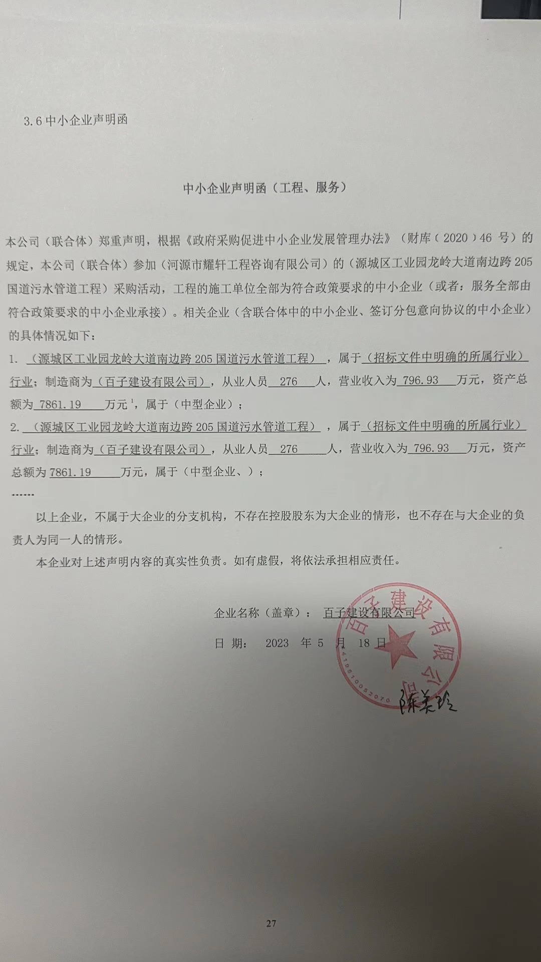 | 百子建設(shè)有限公司 | 通過 | 通過 | 151377.28 | 3 | 是 |